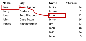 For example, you have a list of names in one series and a list of clothing sizes in a second series: