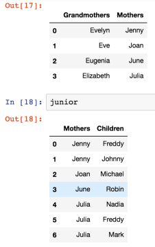 Even more powerful – I highly recommend the help page which explains copious possible scenarios super-clearly! So let’s say I have a list of grandmothers and mothers, and a second list of mothers and children – I want to combine the 2 lists so that I end up with a complete list of all grandmothers, mothers and children: