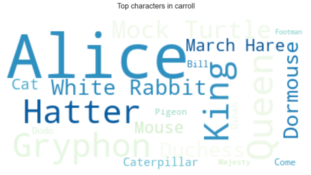 Using proper nouns as the main method of identifying character names worked well to ensure we got the full name in most cases. Loosely ‘ensembling’ this with the results of the more conventional named entity recognition processes helped to reduce some of the noise in the proper nouns (which did not only include persons but also other types of entities). Leveraging the expected long-tailed distribution of characters ensured that we pruned off more of the noisy ‘non-characters’ as well as minor and relatively unimportant characters. Grouping names worked to the extent that we could identify closely-related names like Pip and Mr. Pip, but was less than perfect when it came to more complex scenarios like families where multiple characters all share the same surname.